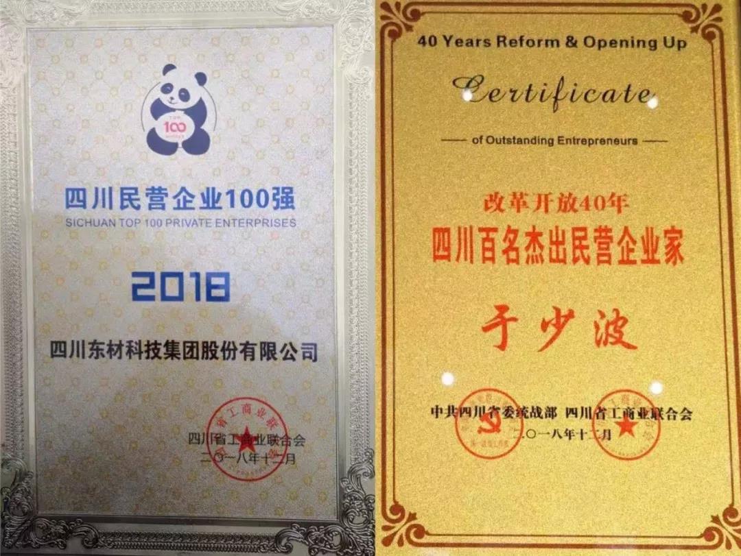 熱烈祝賀東材科技黨委書記、董事長(zhǎng)于少波榮獲“改革開放40年四川百名杰出民營(yíng)企業(yè)家”光榮稱號(hào)