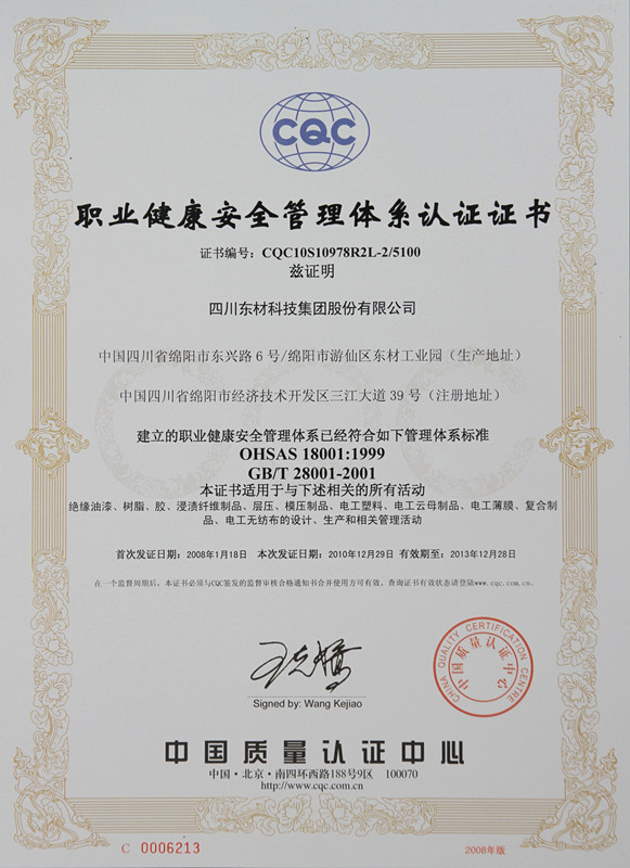 東材科技在國內(nèi)同行業(yè)企業(yè)當(dāng)中率先通過國際ISO9001的質(zhì)量體系認(rèn)證,通過ISO10012國際計(jì)量體系、ISO14001環(huán)境管理認(rèn)證體系、OHSAS18001職業(yè)健康安全體系、GBT 29490知識(shí)產(chǎn)權(quán)管理體系、GBT23331能源管理體系認(rèn)證企業(yè)、IATF16949汽車質(zhì)量管理體系認(rèn)證,不僅使公司產(chǎn)品質(zhì)量保障體系達(dá)到國際化的新標(biāo)準(zhǔn),而且為產(chǎn)品質(zhì)量的穩(wěn)定提供了強(qiáng)有力的保障。